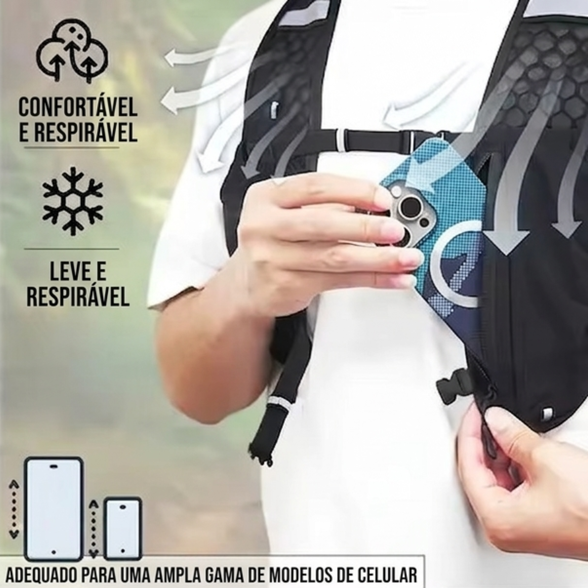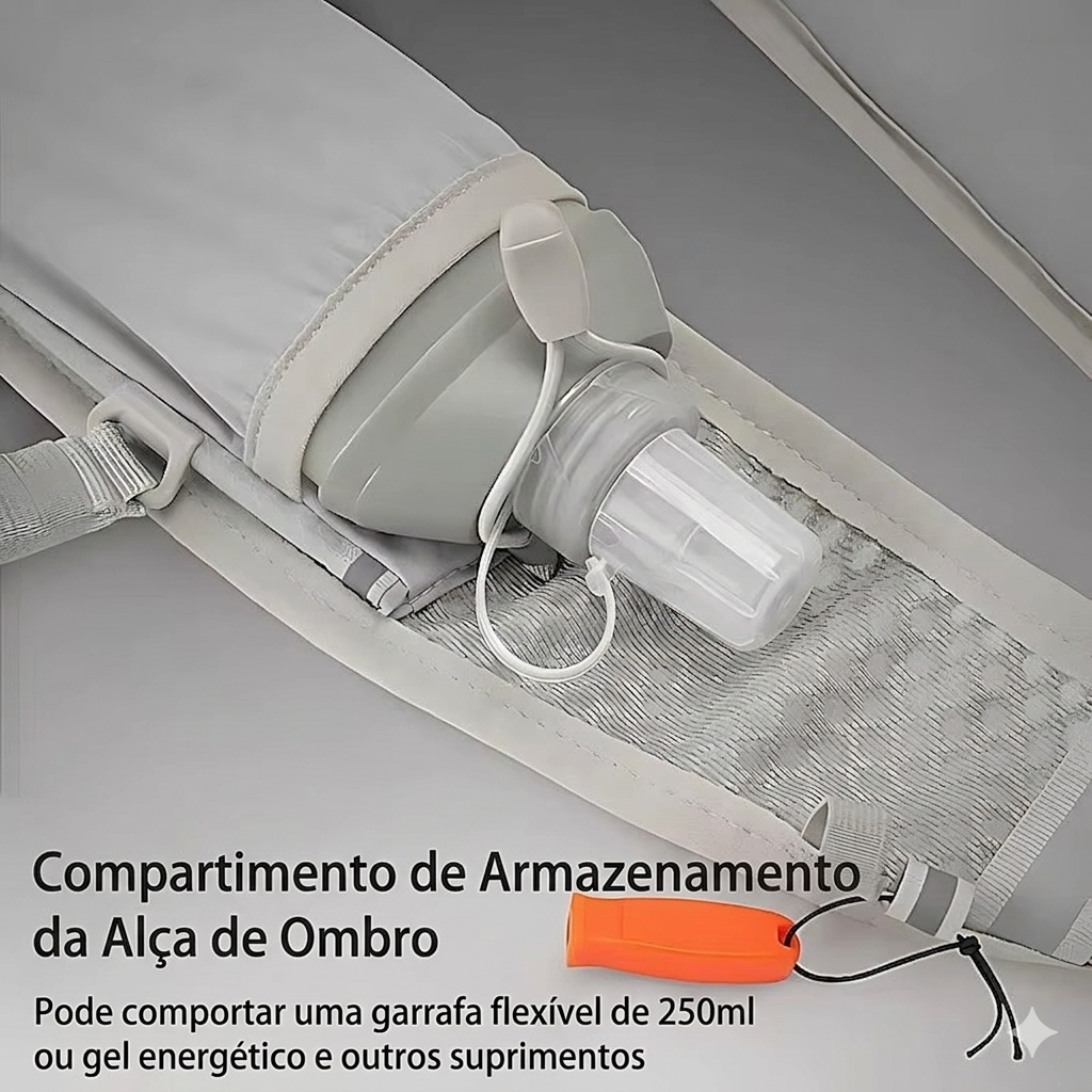 ✔️ Estabilidade Dinâmica: Design estilo colete com sistema de fivela dupla que elimina o balanço, garantindo que o peso fique centralizado durante o movimento.