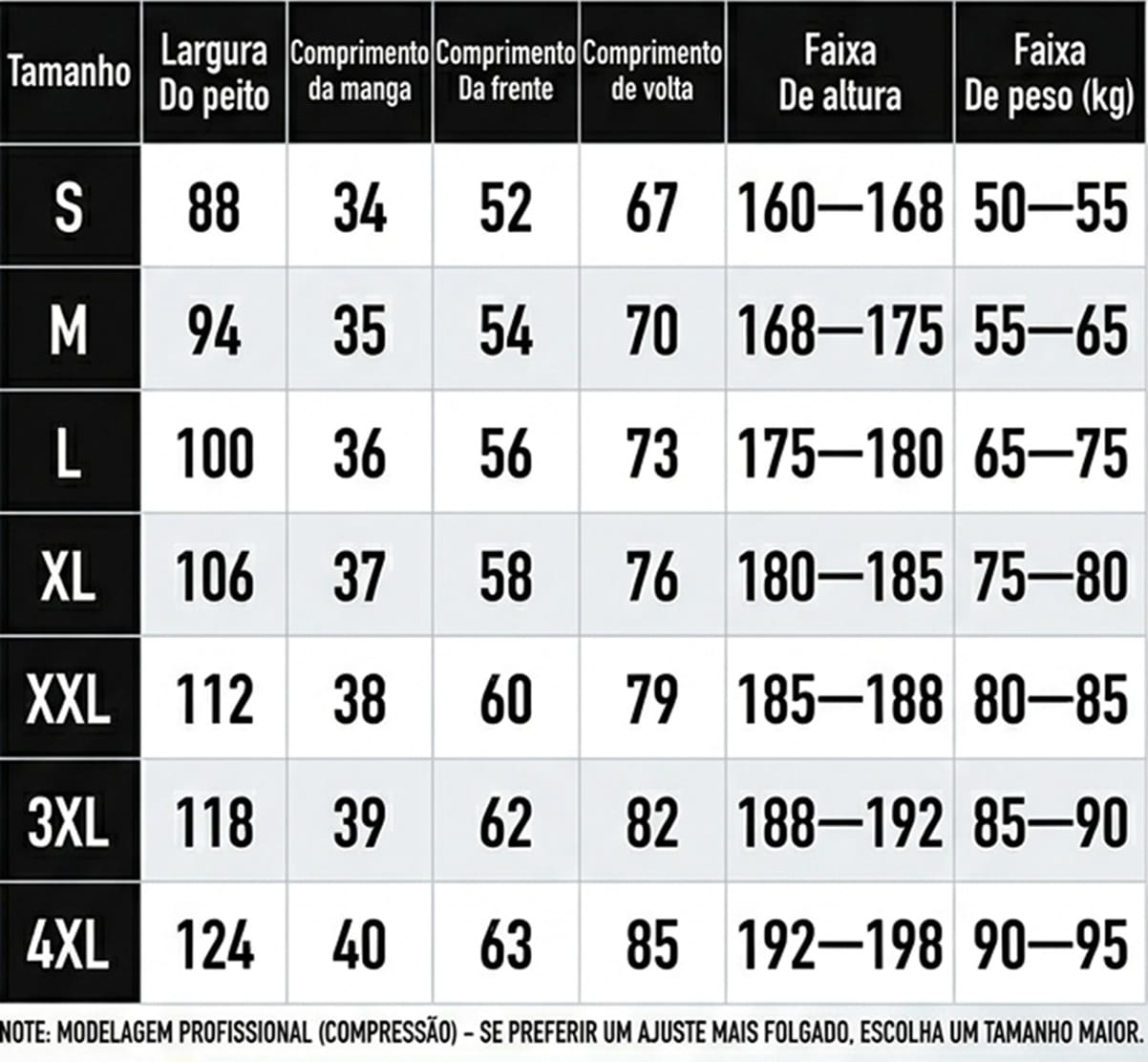 👉 Modelagem: Fit de compressão (Ajuste menor que o padrão – consulte a tabela de medidas).